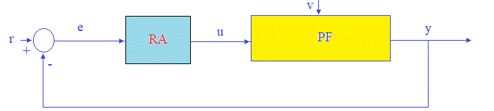 Partea fixata(PF) contine procesul tehnologic(PT) asupra caruia actioneaza regulatorul automat(RA).