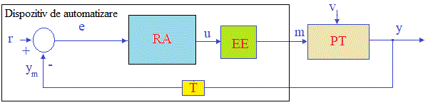 Procesul tehnologic(PT) este comandat de catre regulatorul automat(RA) prin intermediul elementelor de executie(EE).