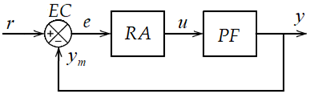 Regulatorul automat (RA) și partea fixată (PF), care include procesul, traductorul și elementul de execuție, sunt integrate într-o schemă de reglare automată (SRA) cu reacție negativă, conform Fig. 1.