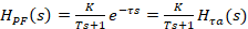 - ca urmare, pentru procesul descris printr-un model de ordinul I cu timp mort (în ipoteza aproximării timpului mort cu o funcție de transfer Pade de ordinul I), rezultă: