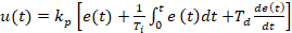 uk = kp* erk + kp/Ti * inte + kp*Td*deriv ;