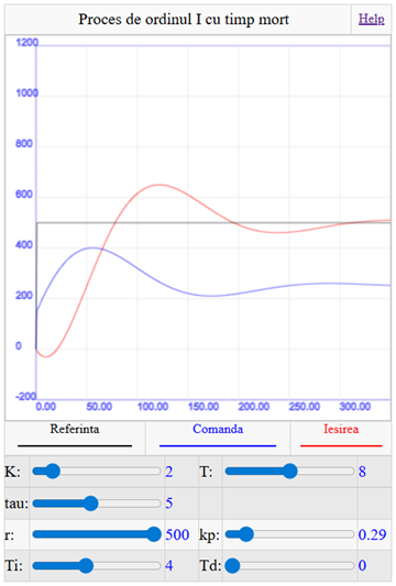 - modificarea valorii semnalului de referință de tip treaptă: r = 0…500;