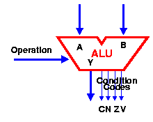 O unitate ALU are doua intrari (A si B) , un port rezultat (Y) , o unitate de control care selecteaza