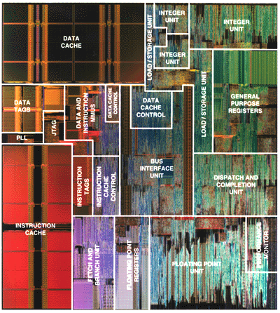 Fotografia la microscop a procesorului Motorola PowerPC604e