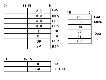 Procesoarele din familia Intel pe 32 biti au urmatoarea structura de registrii generali: