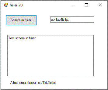 this.label1.Text="A fost creat fisierul: "+this.textBox1.Text;