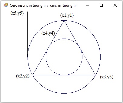x4,y4,w1 ale cercului inscris respectiv x5,y5,w2 ale cercului circumscris.