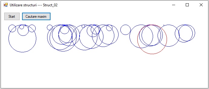 Folosind un vector cu ememente de tip "cerc" ,trasati cercurile, dupa care colorati cu rosu cercul a carui raza este cea mai mare.