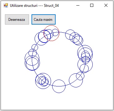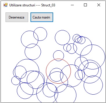 Definiti o structura "cerc" cu trei elemente de tip int :pozitia pe x numita "pozx",pozitia pe y numita "pozy" si diametrul unui cerc numit "diam"