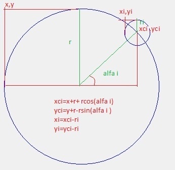 Folosind un vector cu ememente de tip "cerc" ,trasati cercurile, pe un alt cerc dupa care colorati cu rosu cercul a carui raza este cea mai mare.