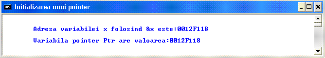 system("TITLE Initializarea unui pointer ");// Titlul ferestrei consola