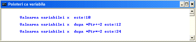 system("TITLE Pointeri ca variabila ");// Titlul ferestrei consola