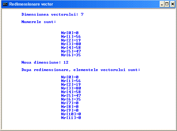system("TITLE Redimensionare vector ");// Titlul ferestrei consola