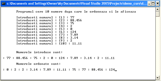 cout << "\n\tProgramul cere 10 numere dupa care le ordoneaza si le afiseaza \n\n";