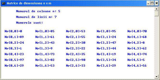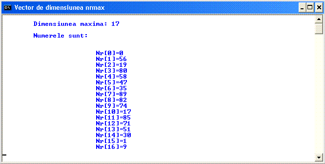cout << "\n\n\tNumerele generate in tabloul numere[] sunt: \n";