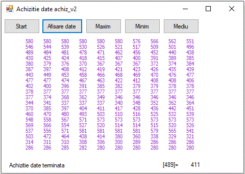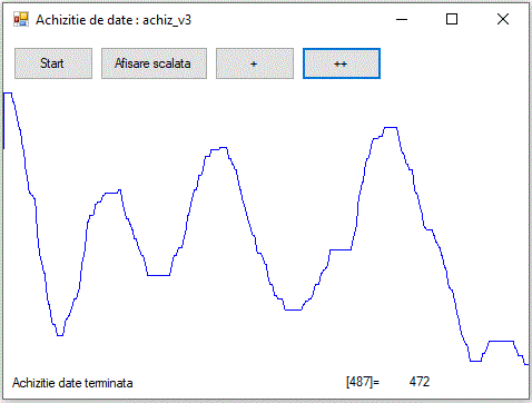 Desen= this.CreateGraphics(); Creion_blu=new System.Drawing.Pen(System.Drawing.Color.Blue); Creion_red=new System.Drawing.Pen(System.Drawing.Color.Red); Creion_green=new System.Drawing.Pen(System.Drawing.Color.Green); scala_h=System.Convert.ToDouble(this.Size.Height-120)/Screen.PrimaryScreen.Bounds.Height/2; scala_w=System.Convert.ToDouble(this.Size.Height-120)/Screen.PrimaryScreen.Bounds.Width/2; nr=this.Size.Width; Array.Resize(ref tens,nr); Array.Resize(ref crnt,nr); stare=1; factor=0; i=0; Desen.Clear(this.BackColor); this.label1.Text ="Se achizitioneaza "+System.Convert.ToString(nr)+" valori"; |
