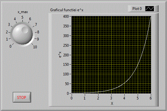 Pentru functia anterioara y=e^x, afisarea graficului functiei se putea realiza si prin intermediul unui control grafic