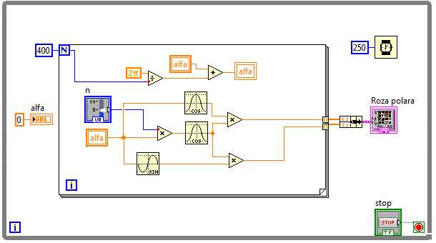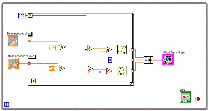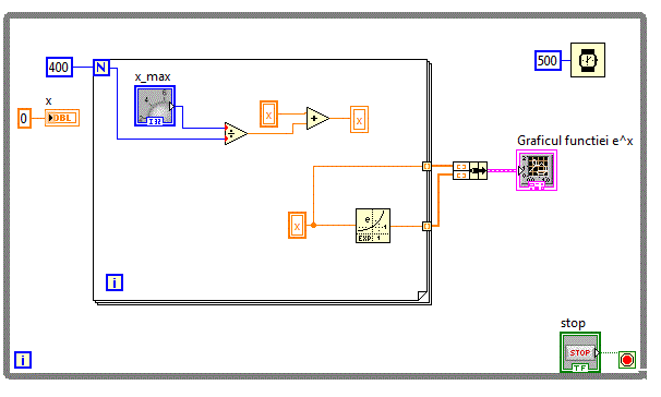 In diagrama bloc se va utiliza o structura de date creata cu functia "Unbundle Function" folosind "Bundel Function"