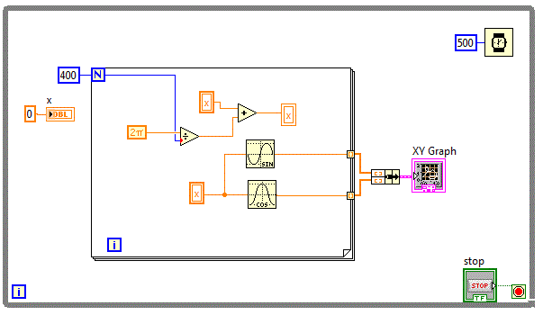 in care sa va realiza o structura de date necesara controlului grafic "XY Graph" allat in grupul Controls-->Modern-->Grapg-->XY Graph .