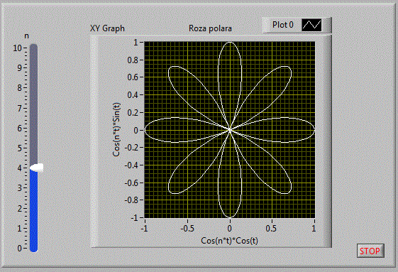 polara simpla, de forma r(t)=a*cos(n*t).Daca n este intreg, aceasta ecuatie produce o roza cu n petale, daca n este impar, sau cu 2n petale daca este