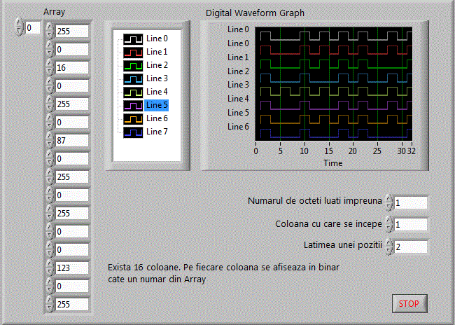 Controlul grafic Digital Waveform Graph este utilizat pentru afisarea valorilor digitale sub forma de forma de unda digitale