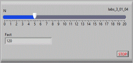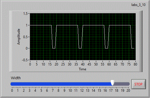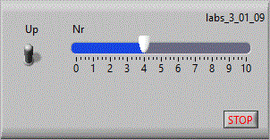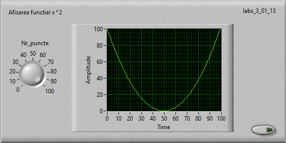 Numarul de puncte afisat este dat de un Control. Afisarea se face intr-un Indicator "Waveform Graph".
