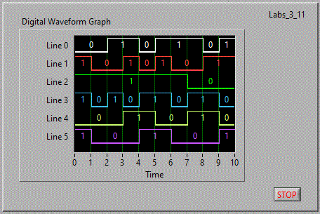 Folosind controlul "Digital Waveform Graph" din biblioteca: Controls => Modern => Graph => Digital Waveform Graph,