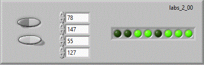 - Folosind structuri decizionale "Selector" si doua comutatoare, afisati pe 8 led-uri patru valori U8 prestabilite.