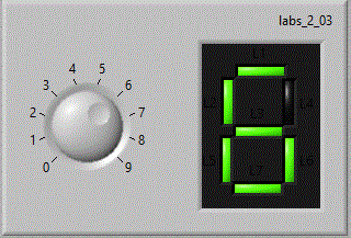realizati aplicatia labs_2_04.vi care afiseaza pe 7 segmente avaloarea Knob-ului pe ecran cat si fizic pe afisorul 7seg