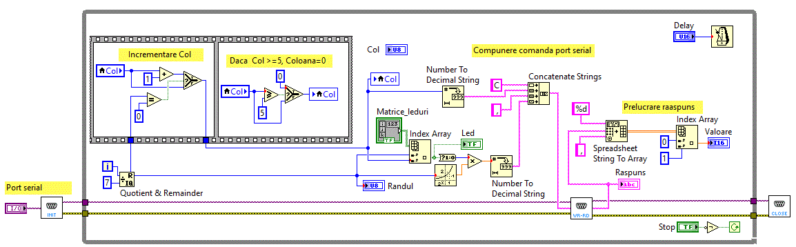 - Afisarea unei coloane dintr-o matrice de LED-uri