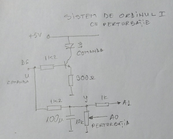 - Utilizati D6 pentru "u - Comanda" circuitului si intrarea A0 pentru "y - Iesirea" circuitului.