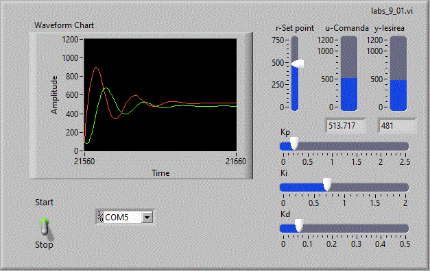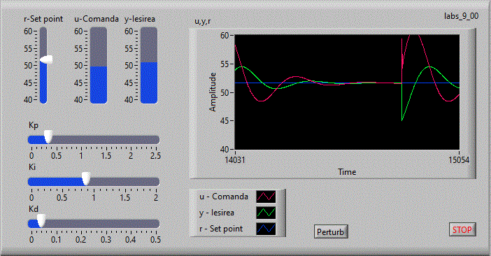 - Reluati aplicatia Pid_v02 si adaugati o perturbatie. Pentru scurt timp fortati iesirea y