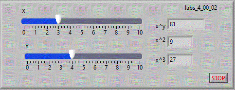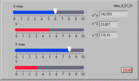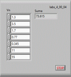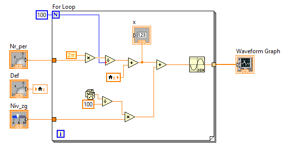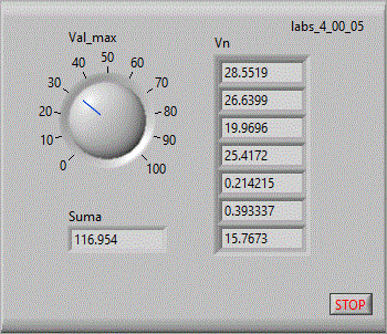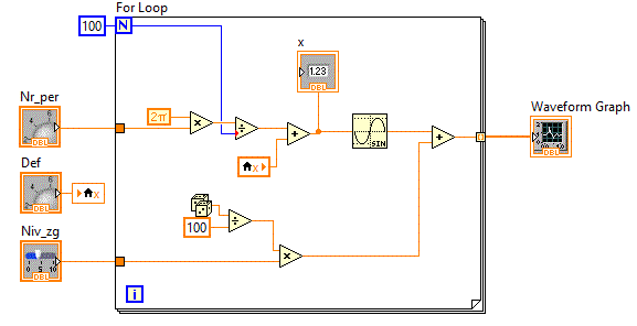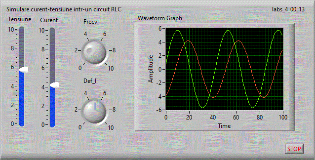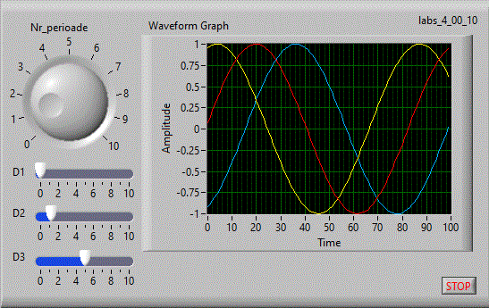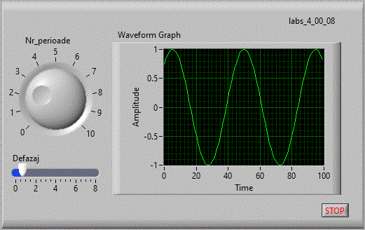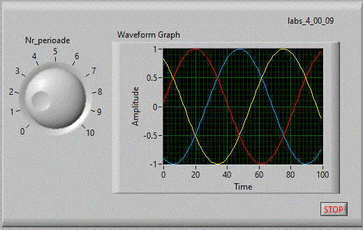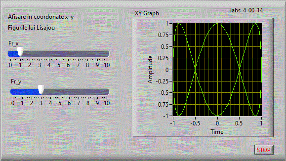 in care se afiseaza in coordonate x-y pe un indicator "XY Graph" figurile lui Lisajou. Pe coordonata x avem valori