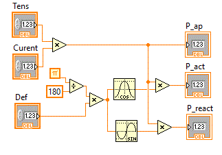 Realizati un subvi care calculeaza puterea aparenta, puterea activa si puterea reactiva : power