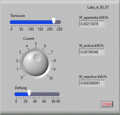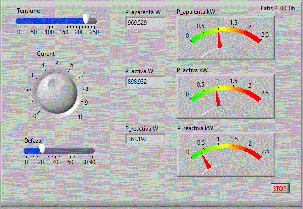 in care se afiseaza 2 forme de unda sinusoidale cu amplitudine, frecventa si faza variabile simuland tensiunea si curentul