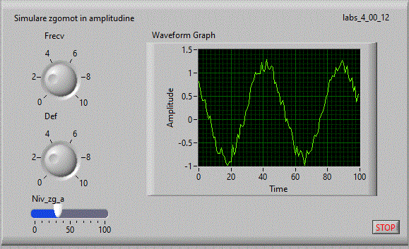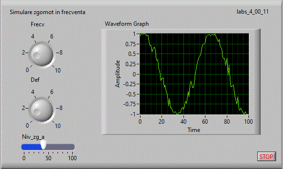 in care se afiseaza o forma de unda sinusoidala cu frecventa si faza variabile la care se adauga un zgomot in amplitudine: