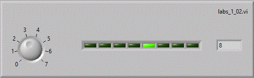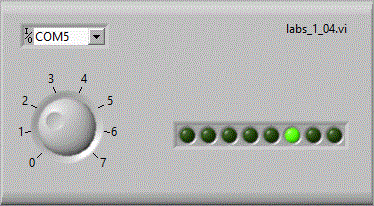 - realizati aplicatia labs_1_04.vi care afiseaza lumina dinamica pe led-urile modului Multiio.