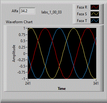 - Folosind variabile locale, Bundle Function pentru compunerea valorilor si Waveform Chart pentru afisare grafica, afisati forma de unda trifazata