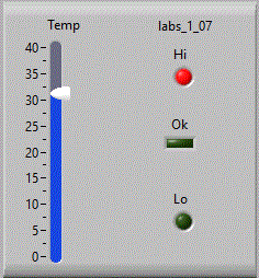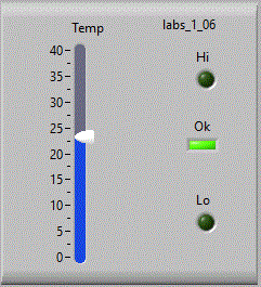 - Folosind functia logica "In Range and Coerce" , aprindeti led-ul rosu la temperaturi de peste 28 gr Celsius, led-ul albastru pentru