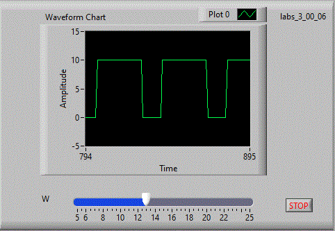 Afisati un semnal "dreptunghiular" de latime variabila folosind structura "Formula node".