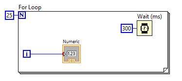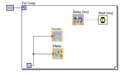 Diagrama bloc va contine structura "For Loop" in interiorul careia se include afisarea numerelor si temporizarea afisarii,