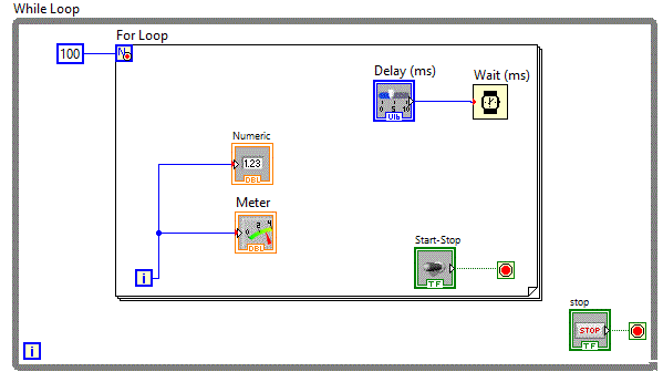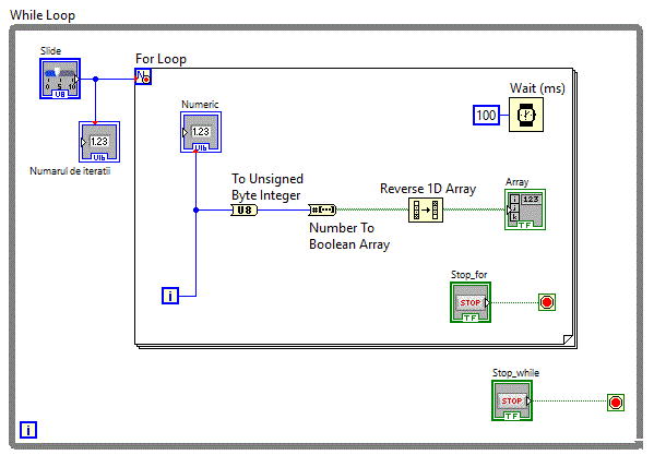 Avem deci doua butoane, unul pentru a stopa structura "For Loop" si unul pentru a stopa structura "While Loop".
