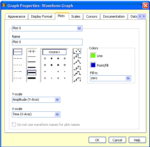 Pentru a obtine afisarea sub forma de histograma, a fost setat corespunzator control de tipul Waveform Graph