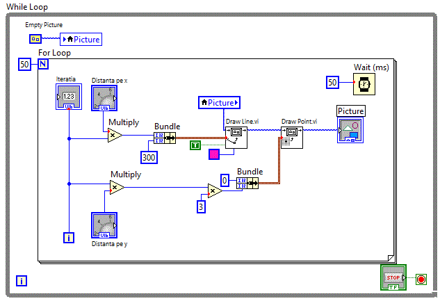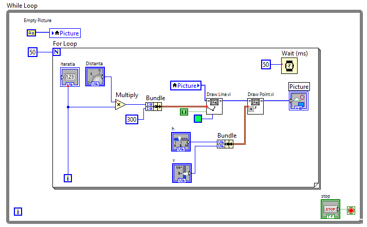 Se va folosi deci functia "Draw Point" si "draw Line" intr-o structrua "For Loop" .