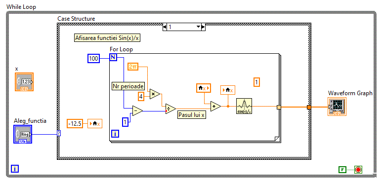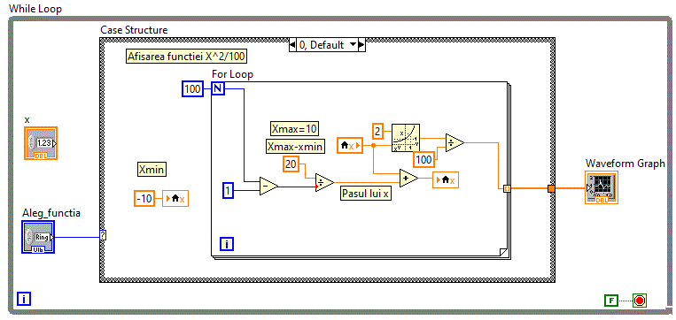 folosim si in cadrul acestiei sectiuni facilitatile grafice oferite in cadrul mediului de dezvoltare "LabView"