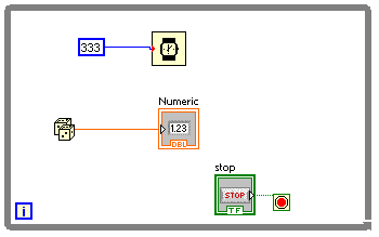 afisarea temporizata a valorilor generate va trebui sa includem in structura repetitiva o functie "Wait" aflata in grupul Functions => Timing => Wait,