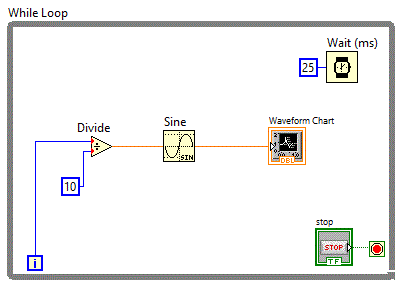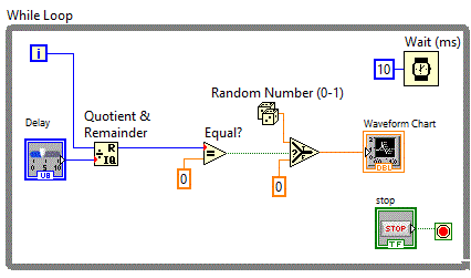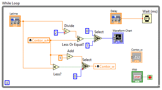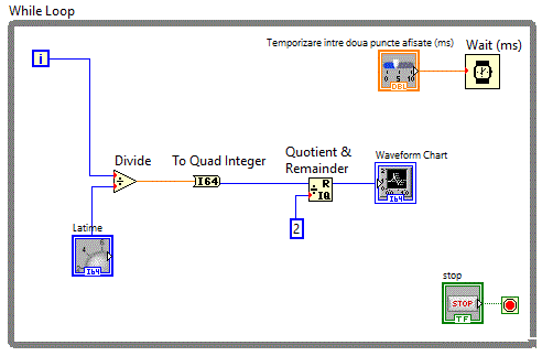 structura "While Loop" vom putea controla intervalul in care sa se afiseze repetitiv valorile generate nemaifiind nevoie de rulare continua.