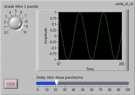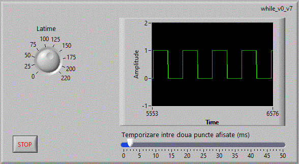 while_v0_v10 utilizeaza controlul grafic "Wavwform Chart" setat in mod corespunzator pentru