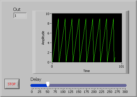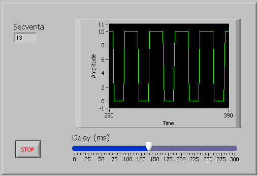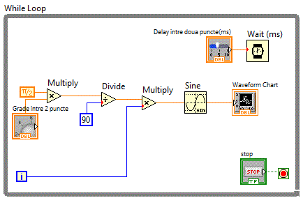 Diagrama bloc va trebui sa utilizeze valoarea data de controlul "Delay" pentru a realiza o pauza intre valorile