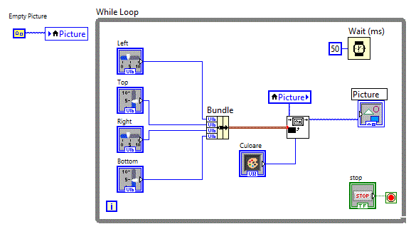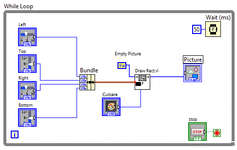 dreptunghiului, asa ca a fost necesata "impachetarea celor 4 parametrii utilizand o functie "Bundle" situata in grupul : Programming => Cluster => Bundle